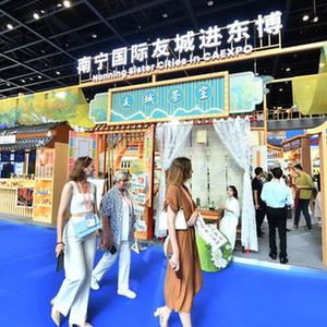 9月17日,在南寧國際會展中心,觀眾在東博會“一帶一路”國際展區(qū)參觀。