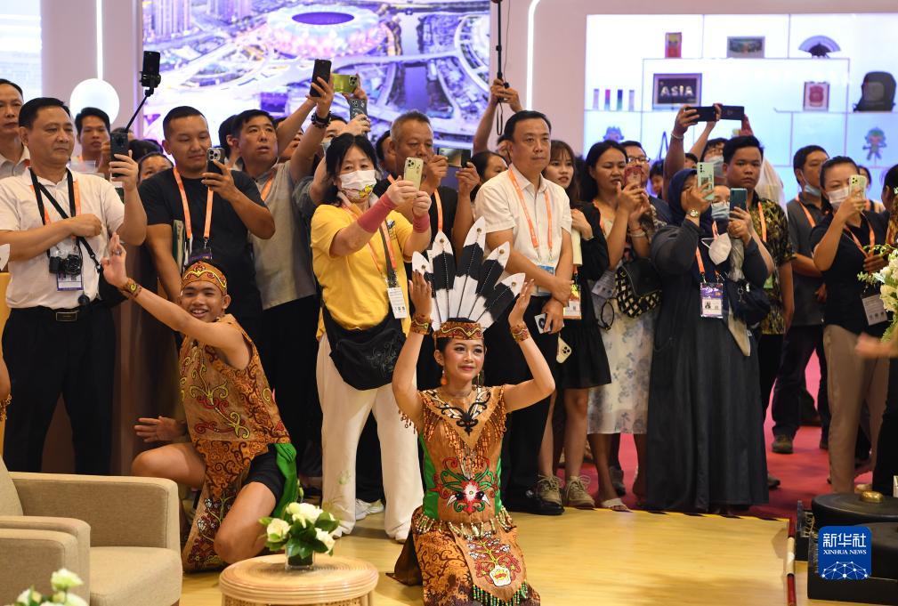 9月17日,在南寧國際會展中心,印度尼西亞演員在東博會“魅力之城”展區表演節目。
