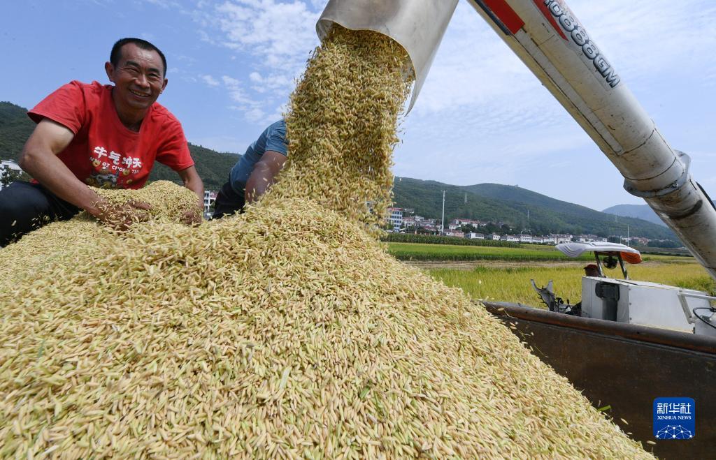 9月17日,湖北省襄陽(yáng)市保康縣馬橋鎮(zhèn)中坪村冷水稻豐收,農(nóng)民喜笑顏開(kāi)。