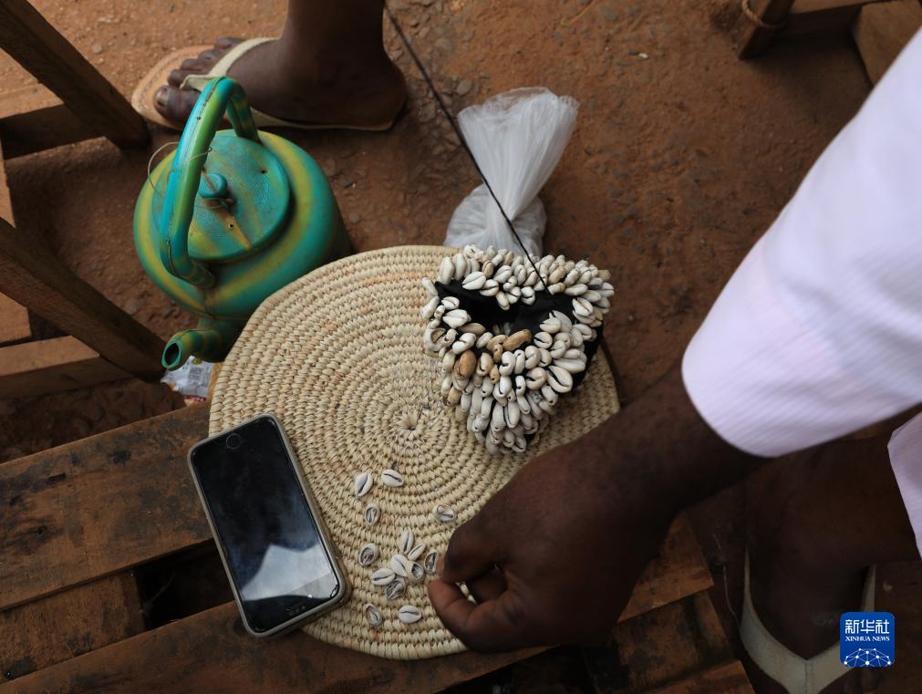 9月16日,在喀麥隆首都雅溫得手工藝品市場,一名手工藝人制作手工藝品。