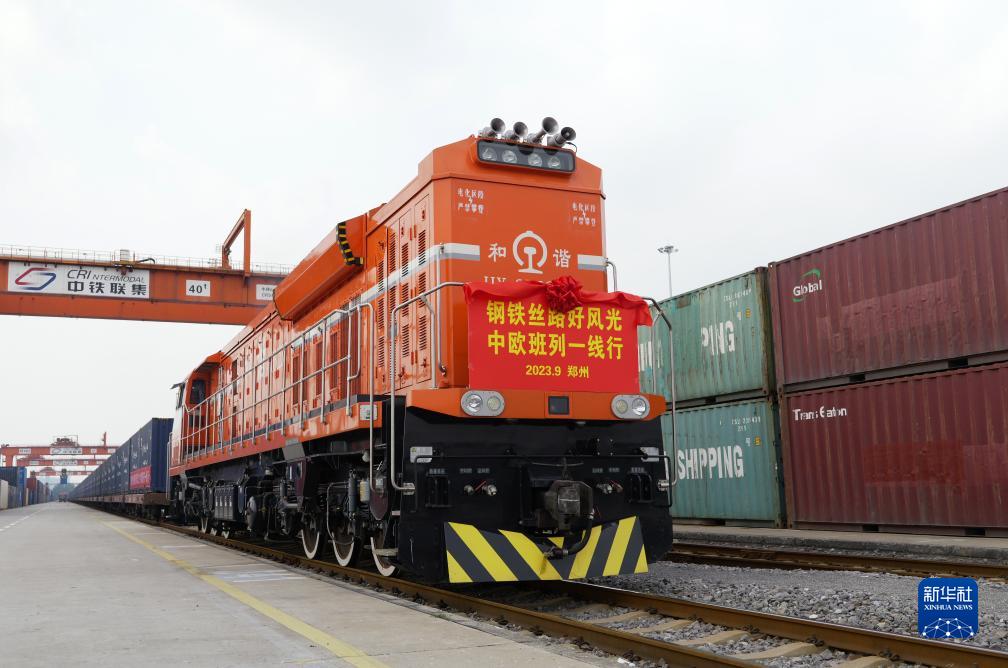 9月17日,X8202次中歐班列(鄭州)停靠在國鐵集團鄭州局圃田車站。