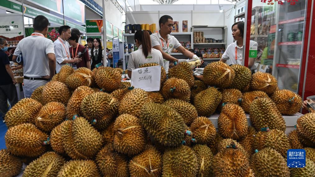 9月18日,在南寧國際會展中心,越南客商在銷售榴蓮。