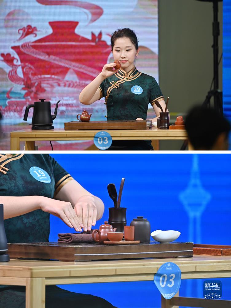 9月18日,選手在國家會展中心(天津)參加茶藝項目的比賽(拼版照片)。