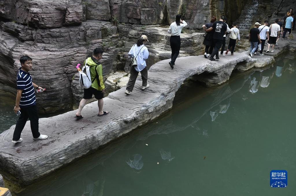 9月17日,游人在云臺山景區內游覽。