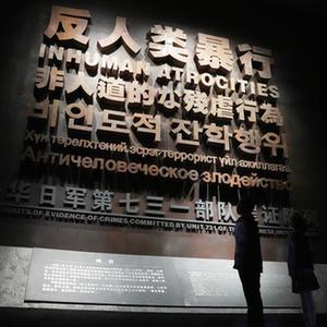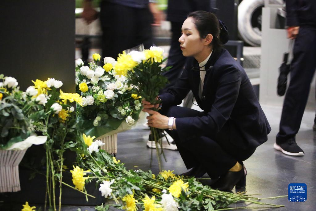 9月18日,工作人員在侵華日軍第七三一部隊罪證陳列館整理花束。