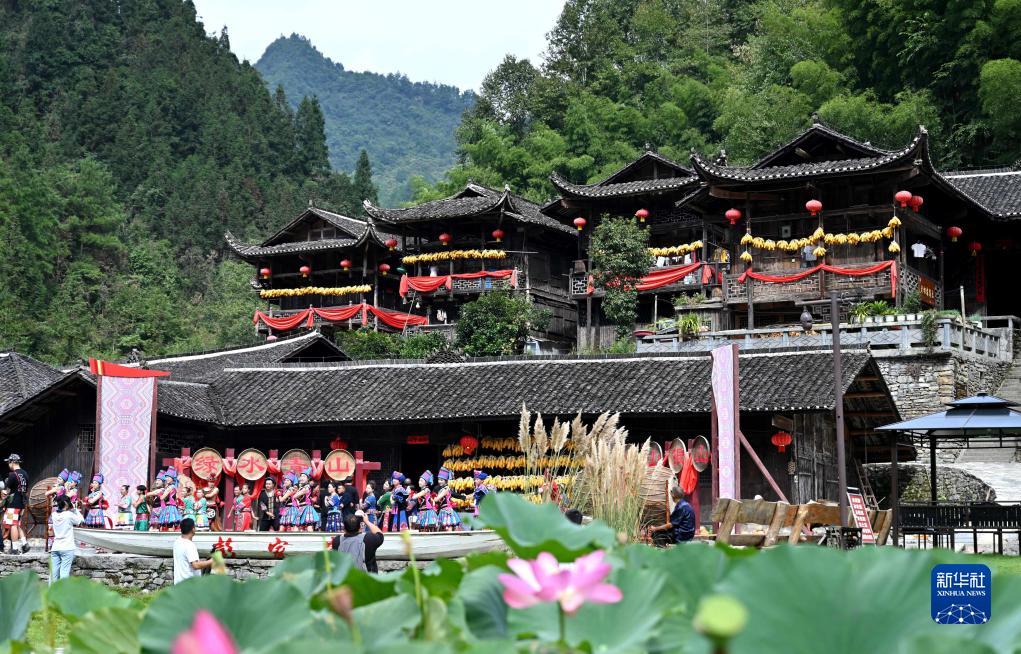 金秋時節,湖北省恩施土家族苗族自治州宣恩縣彭家寨古吊腳樓群景色如畫。吊腳樓群四周稻田成熟泛黃,樓上居民懸掛玉米點綴其間,古寨豐收圖景吸引游客前往感受金秋收獲的喜悅。彭家寨是鄂西山區保存完好的土家族民居群落,寨內吊腳樓建筑精美,古色古香。