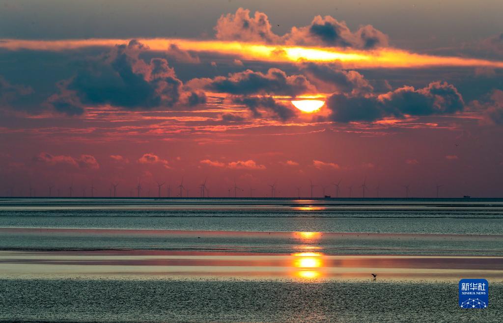 晨曦下的鹽城東臺條子泥濕地(2023年9月1日攝)。
