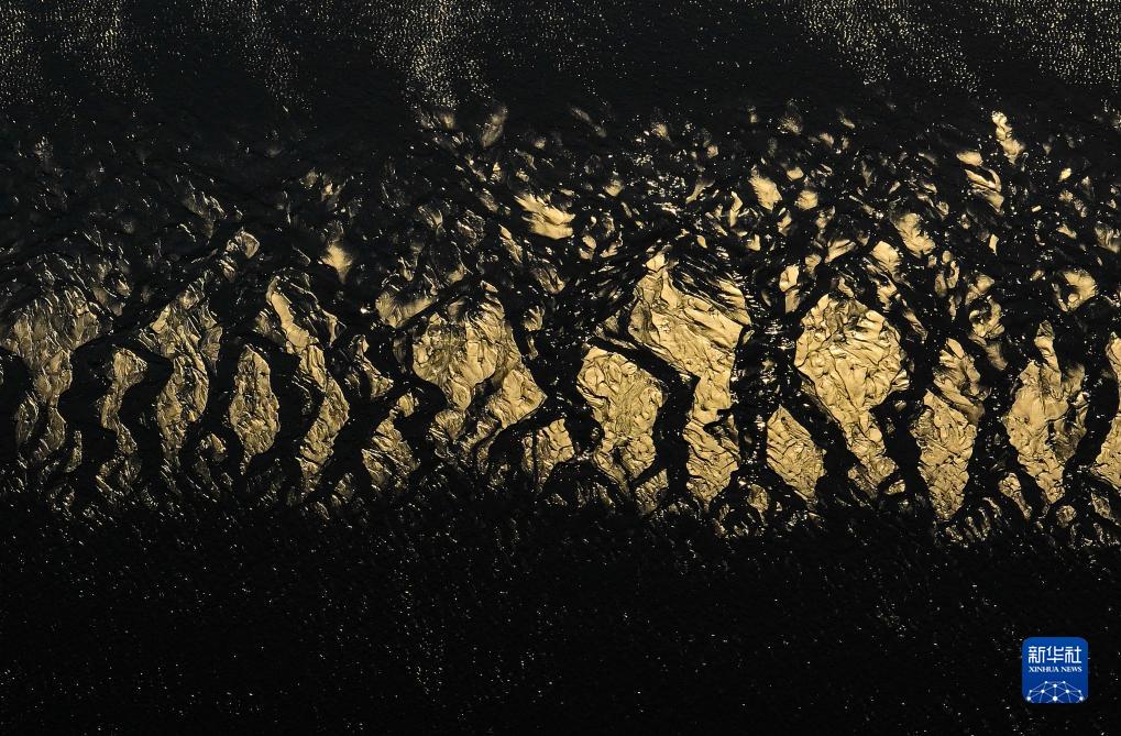 鹽城東臺條子泥濕地灘涂景色(2023年9月1日攝,無人機照片)。