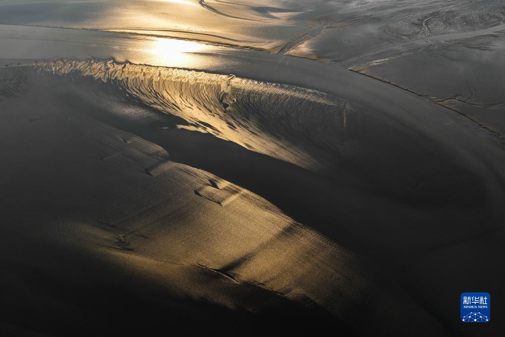 鹽城東臺條子泥濕地日出時分景色(2023年9月1日攝,無人機照片)。