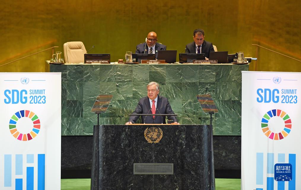 9月18日,在位于紐約的聯合國總部,聯合國秘書長古特雷斯(前)在聯合國可持續發展目標峰會上講話。