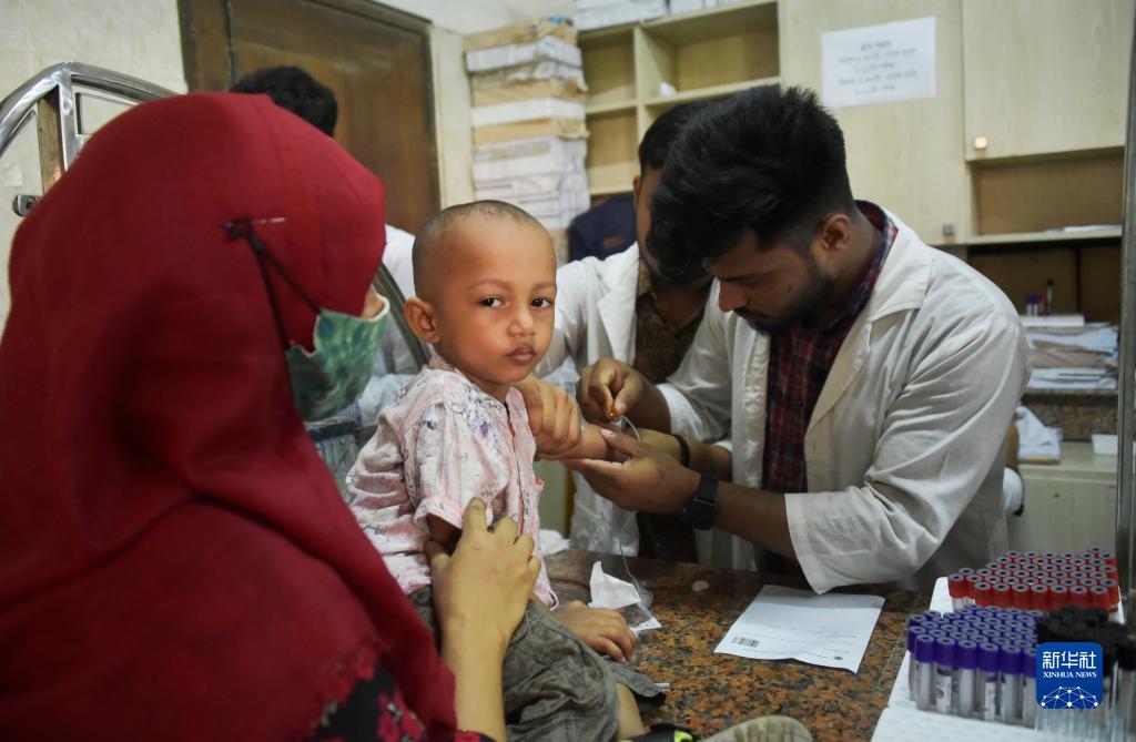 9月18日,一名兒童在孟加拉國達卡一家醫院接受采血檢測。
