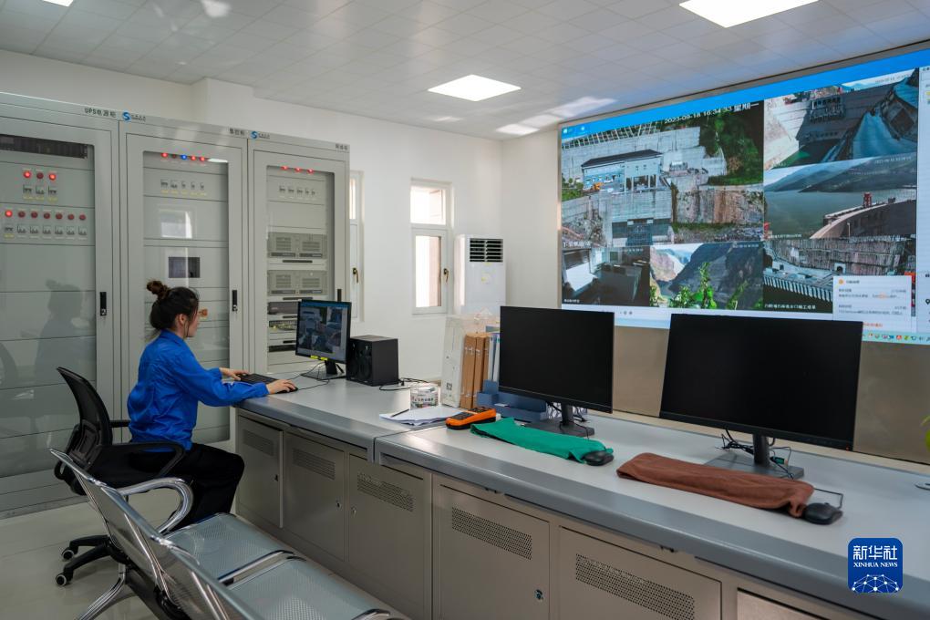 9月18日,一名工作人員在白鶴灘水電站下游集魚站內工作。