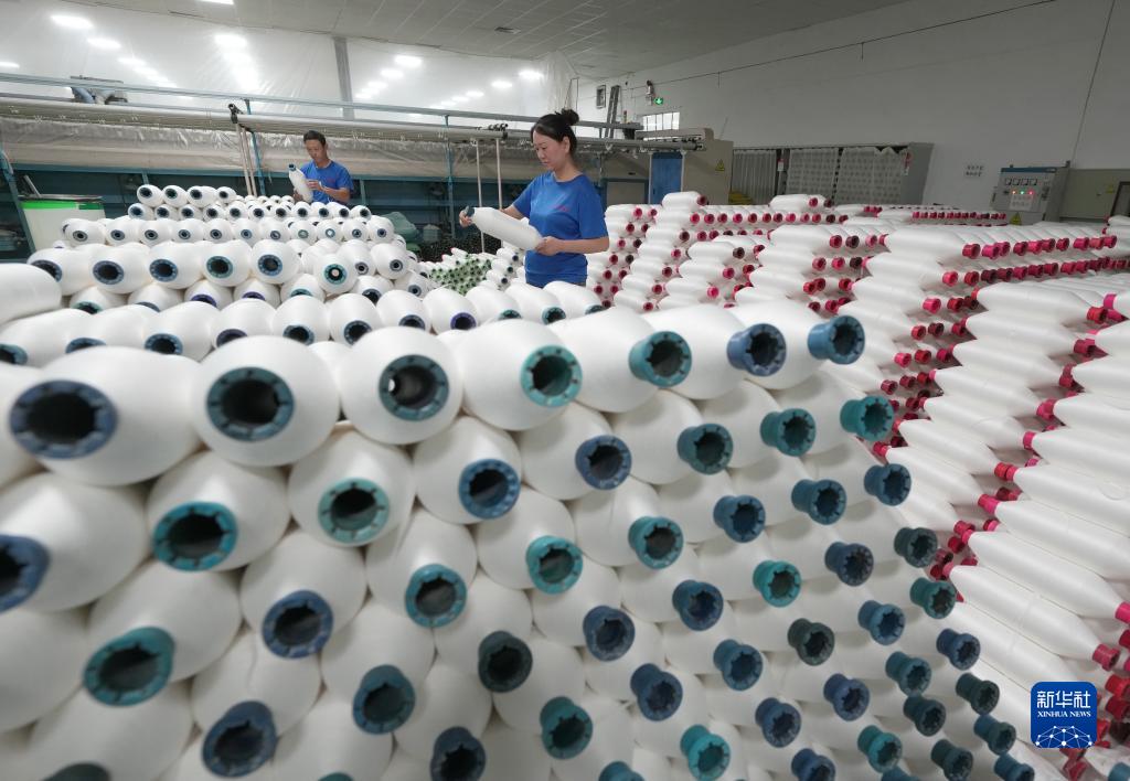 9月19日,工人在晉州市一家紡織企業的生產車間工作。