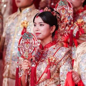 當日,在成達萬(成都經達州至萬州)高速鐵路四川省蓬安縣燕山寨隧道口的施工工地,來自中鐵三局五公司各建設工地的38對新人,身著中國傳統婚禮服飾參加集體婚禮。