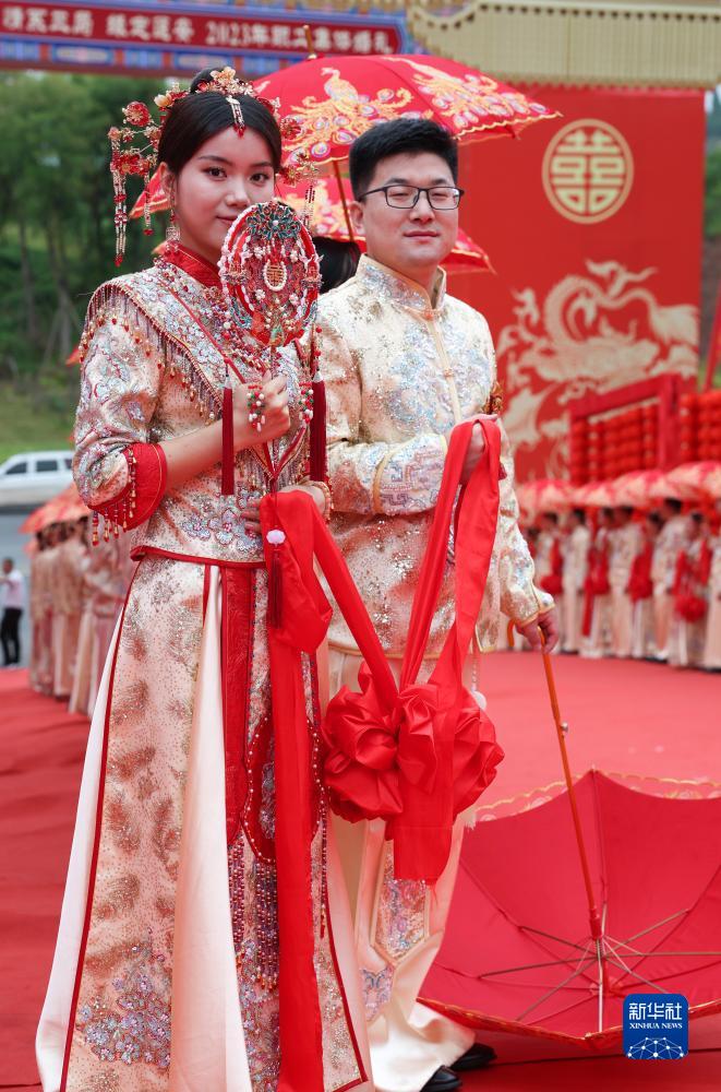 當日,在成達萬(成都經達州至萬州)高速鐵路四川省蓬安縣燕山寨隧道口的施工工地,來自中鐵三局五公司各建設工地的38對新人,身著中國傳統婚禮服飾參加集體婚禮。