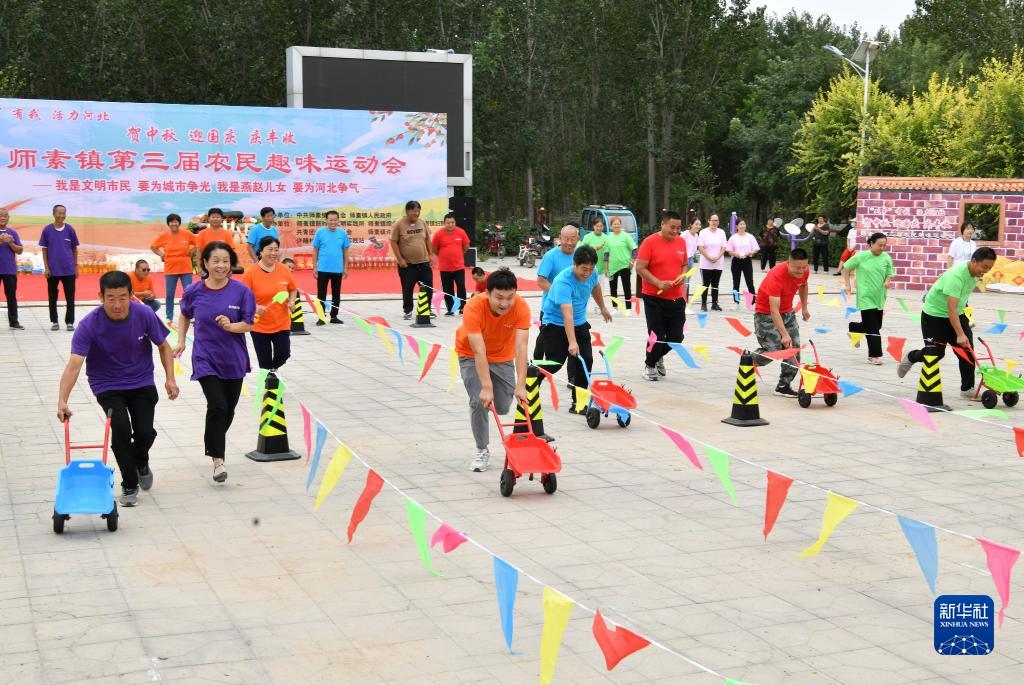 當日,河北省滄州市肅寧縣師素鎮舉辦農民趣味運動會,人們通過參與運花生、貼辣椒、豆類分揀等趣味運動項目,慶祝豐收。