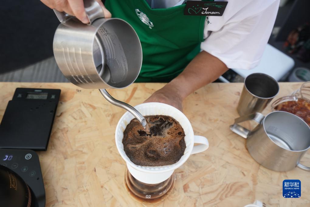 9月19日,在星巴克中國咖啡創新產業園開園儀式現場,工作人員制作咖啡。