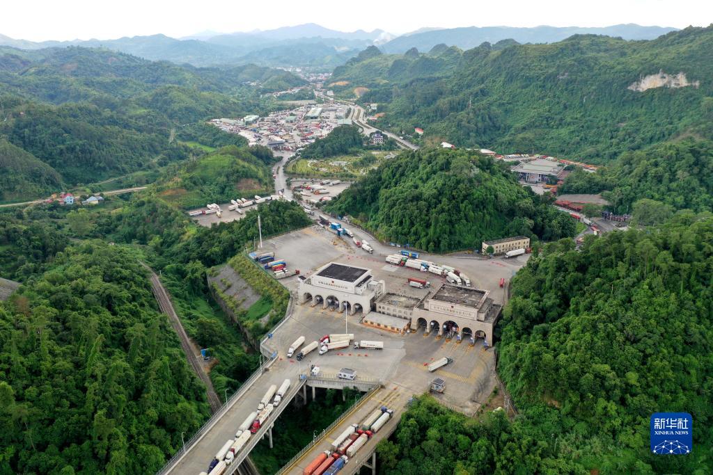 這是9月9日拍攝的繁忙的廣西憑祥友誼關口岸(無人機照片)。