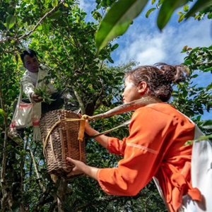 “普洱景邁山古茶林文化景觀”位于云南省普洱市瀾滄拉祜族自治縣,由5片古茶林、9個古村寨以及3片分隔防護林共同構成。“普洱景邁山古茶林文化景觀”項目在第45屆世界遺產大會上通過審議,列入《世界遺產名錄》。時下正值秋茶采摘期,當地茶農搶抓農時采摘秋茶供應市場。