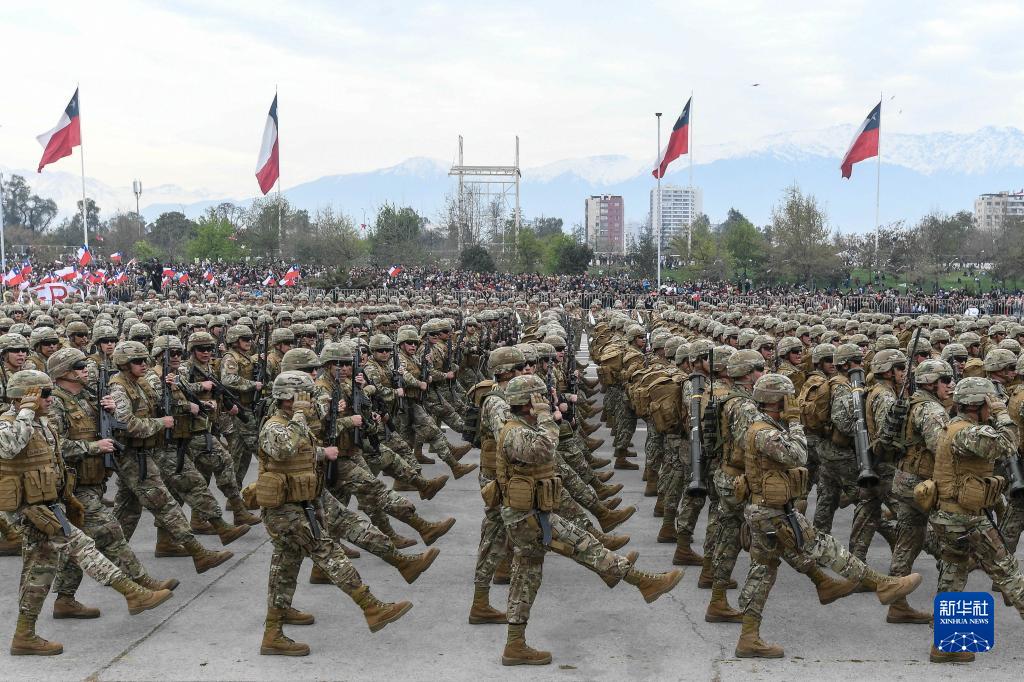 當日,一年一度的智利陸軍節閱兵式在首都圣地亞哥奧伊金斯公園舉行。智利陸海空三軍和警察部隊7700多人參加了閱兵式。