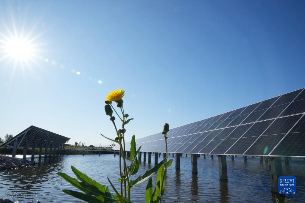 這是9月19日拍攝的大慶油田星火水面光伏電站一景。