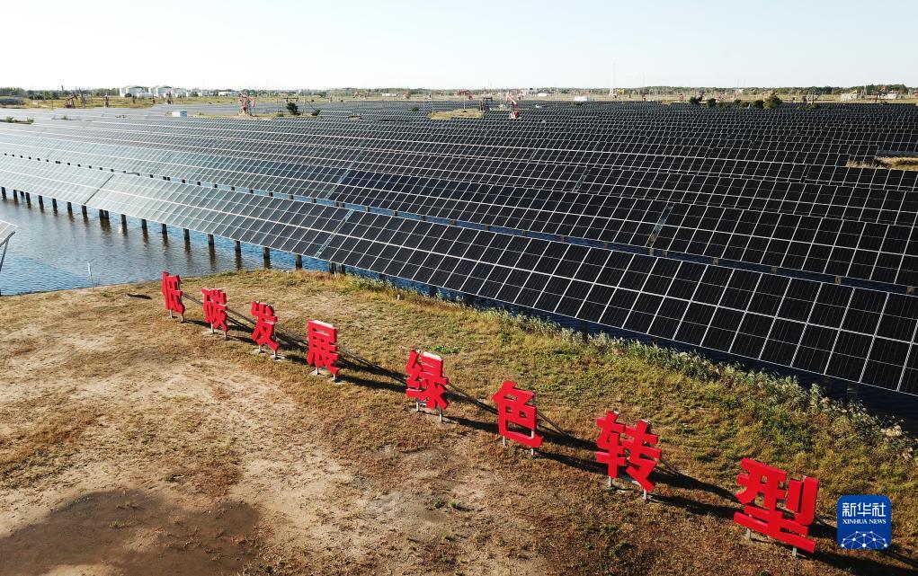 這是9月19日拍攝的大慶油田星火水面光伏電站局部(無人機照片)。