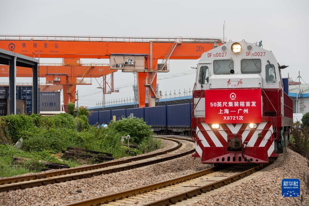 9月20日,上海發往廣州的載有40個50英尺集裝箱的X8721次多聯快車從鐵路上海貨運中心閔行站出發,駛往廣東東莞。