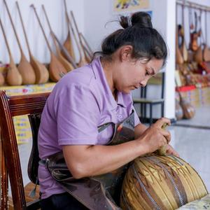 新疆喀什地區疏附縣吾庫薩克鎮托萬克吾庫薩克村,被稱為“中國新疆民族樂器村”,樂器制作技藝在這個村里世代流傳,迄今已有上百年的歷史。