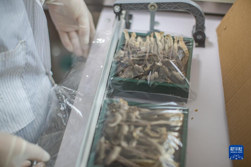 9月20日,在重慶市城口縣嶸彬農業開發有限公司,工人將風干后的食用菌封袋。
