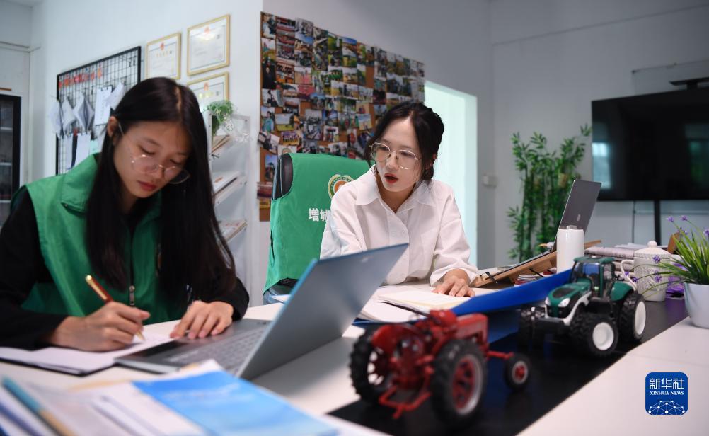 9月18日,在廣州市增城區(qū)石灘鎮(zhèn)石湖村的石鄉(xiāng)農(nóng)機專業(yè)合作社,沈燕芬(右)和沈笑芬在商量工作規(guī)劃。