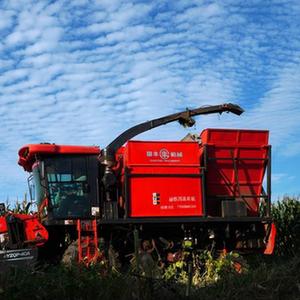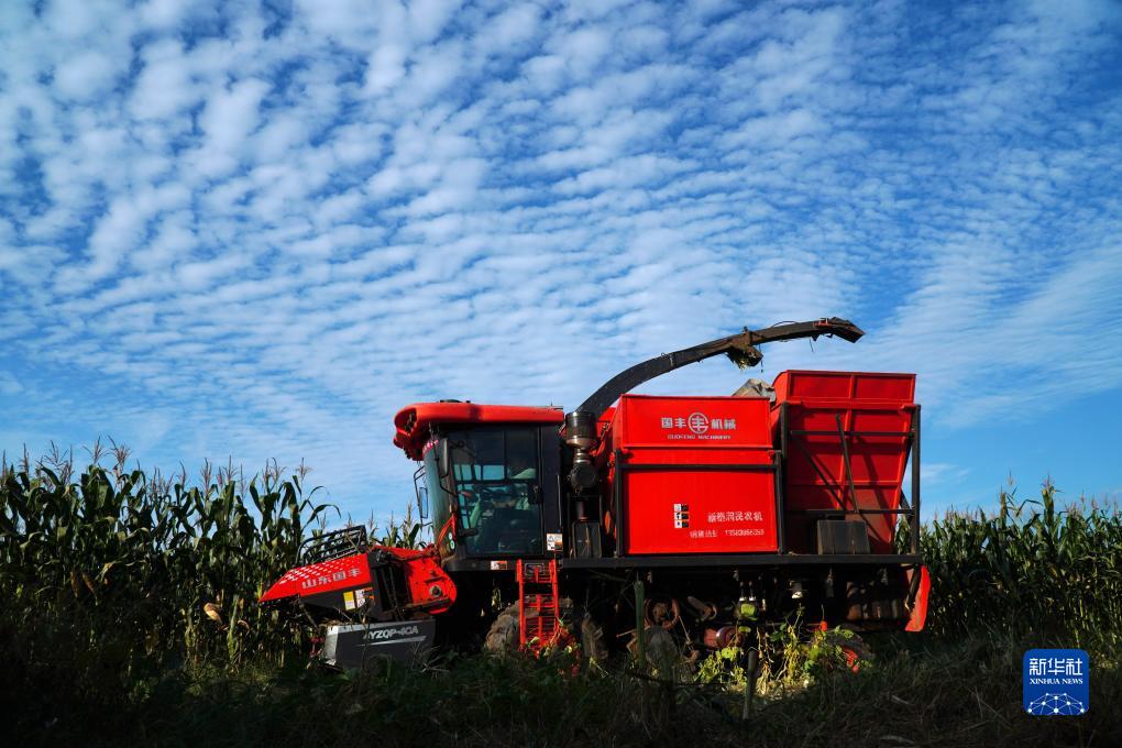 9月20日,在山東省新泰市禹村鎮(zhèn),一臺(tái)玉米聯(lián)合收割機(jī)在收獲成熟的玉米。
