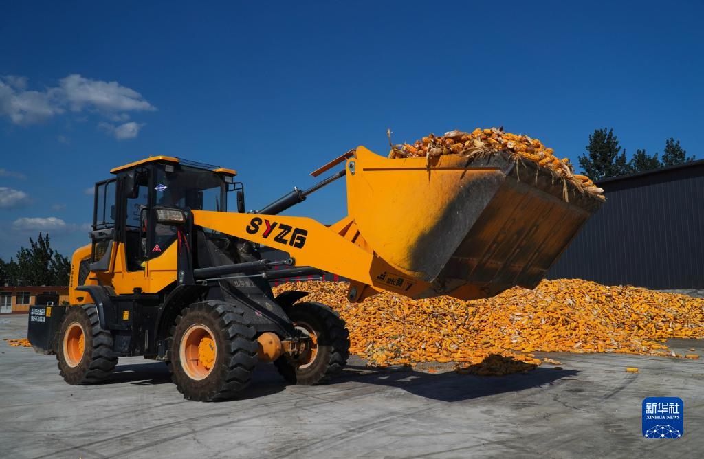 9月20日,在山東省新泰市禹村鎮(zhèn),農(nóng)戶利用機械設(shè)備搬運、晾曬剛收獲的玉米。