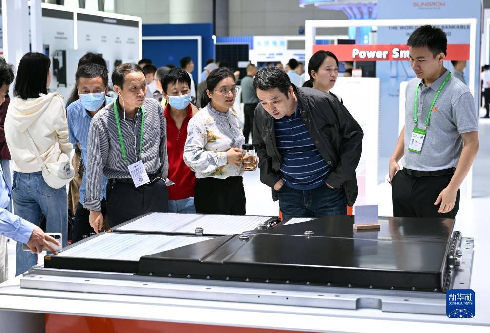 9月21日,觀眾在2023世界制造業(yè)大會參觀一款新能源汽車電池包。
