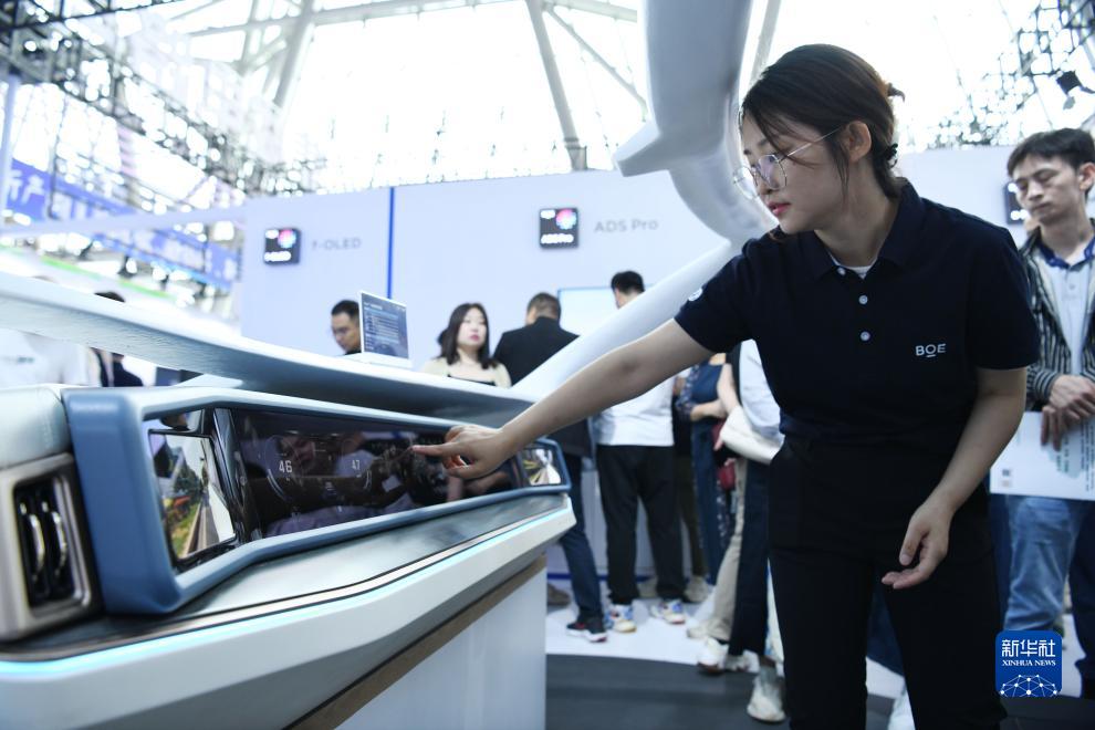 9月21日,在2023世界制造業大會上,工作人員在介紹車載智慧駕艙。
