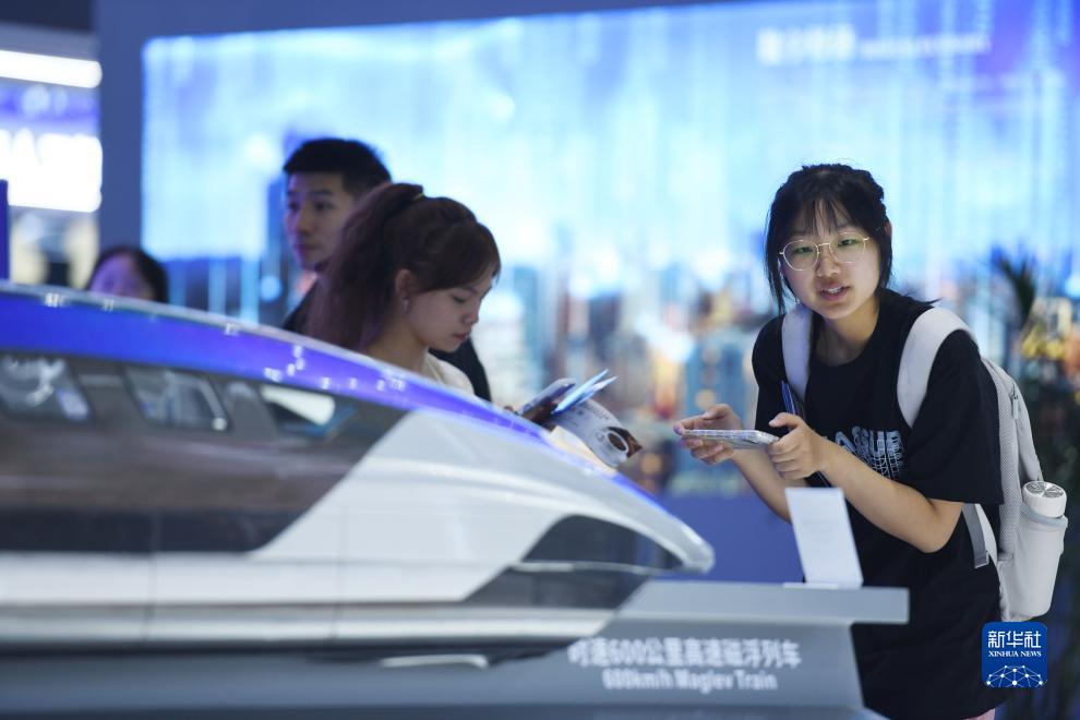 9月21日,在2023世界制造業大會上,觀眾在近距離觀看時速600公里高速磁浮列車模型。