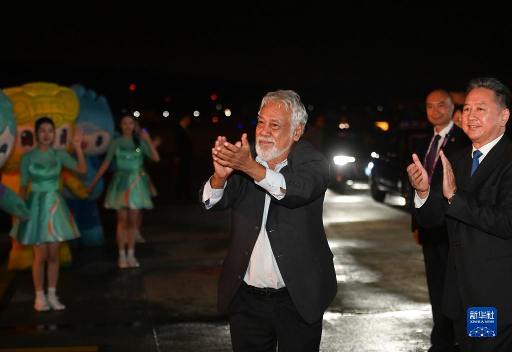 9月21日晚,來華出席杭州亞運會開幕式的東帝汶總理夏納納抵達浙江省杭州市。