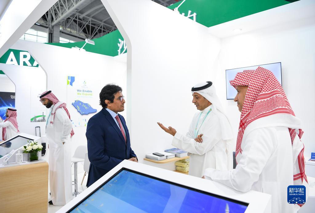 9月21日,嘉賓在第六屆中國—阿拉伯國家博覽會主賓國沙特阿拉伯王國展館洽談。