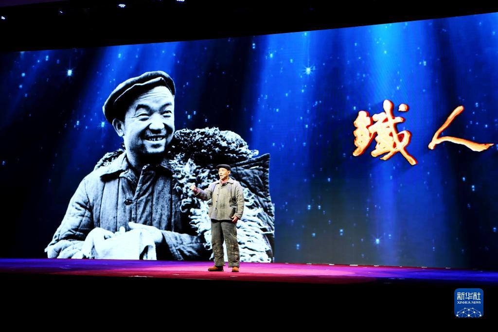 9月21日,演員在表彰大會現(xiàn)場朗誦敘事散文詩《鐵人王進喜》。