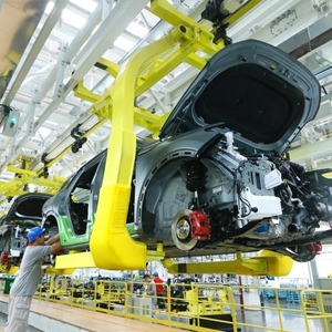 9月21日,在山東省青島市即墨區一家汽車制造企業的總裝車間,工人在組裝汽車。