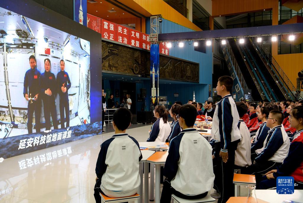 9月21日,在陜西延安科技館“天宮課堂”第四課地面課堂,學生在向航天員提問。