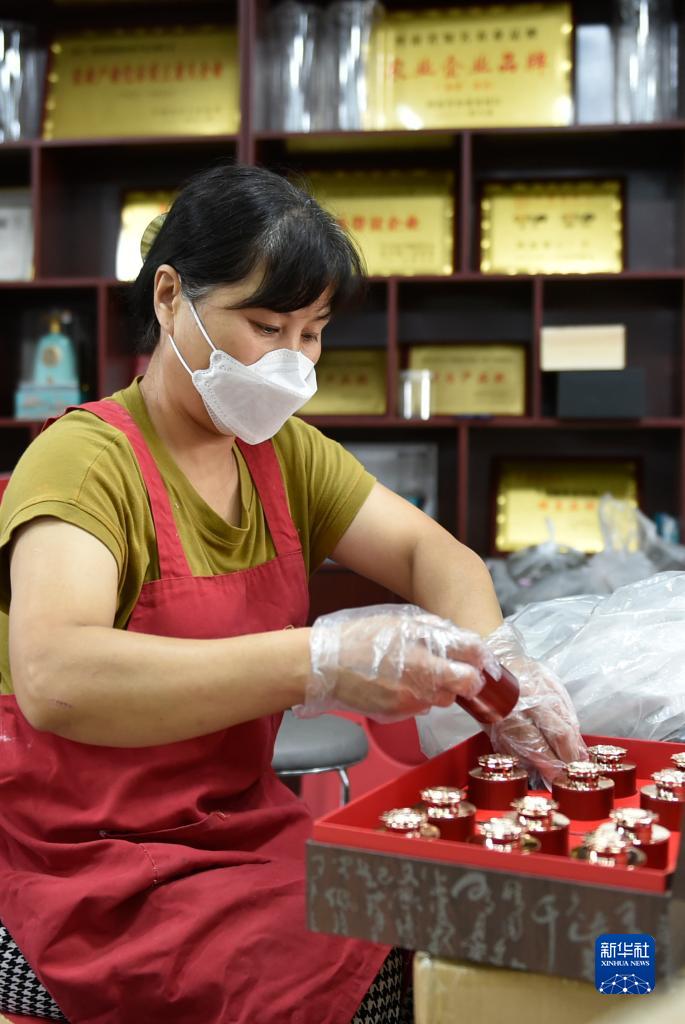 9月21日,在汝州市焦村鎮一家桑蠶產業公司,工作人員在包裝桑葉茶。