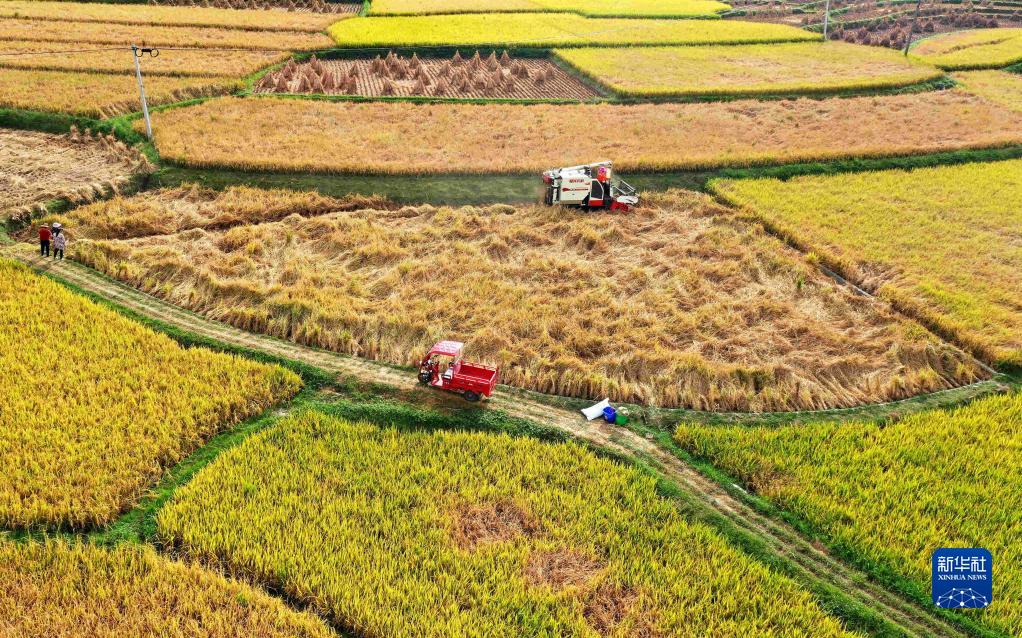 金秋時(shí)節(jié),全國(guó)秋糧陸續(xù)進(jìn)入收獲季,各地農(nóng)民在天氣晴好時(shí),抓緊收獲、晾曬、入庫(kù)稻谷、玉米等秋糧作物,力爭(zhēng)糧食豐收。