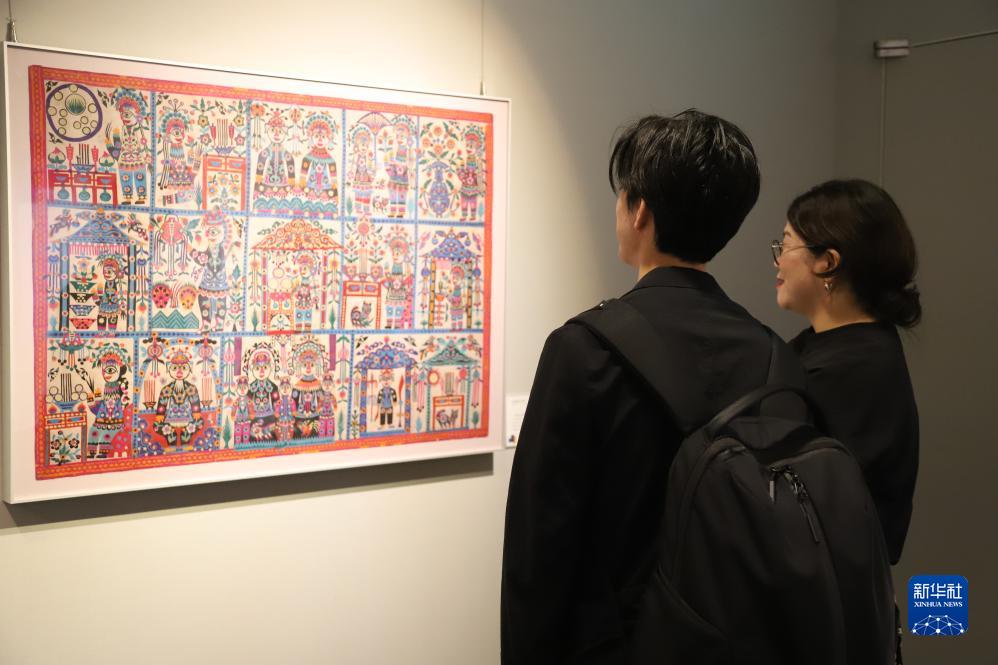 9月21日,人們在日本東京舉行的庫淑蘭剪紙藝術展預展上觀看剪紙作品。
