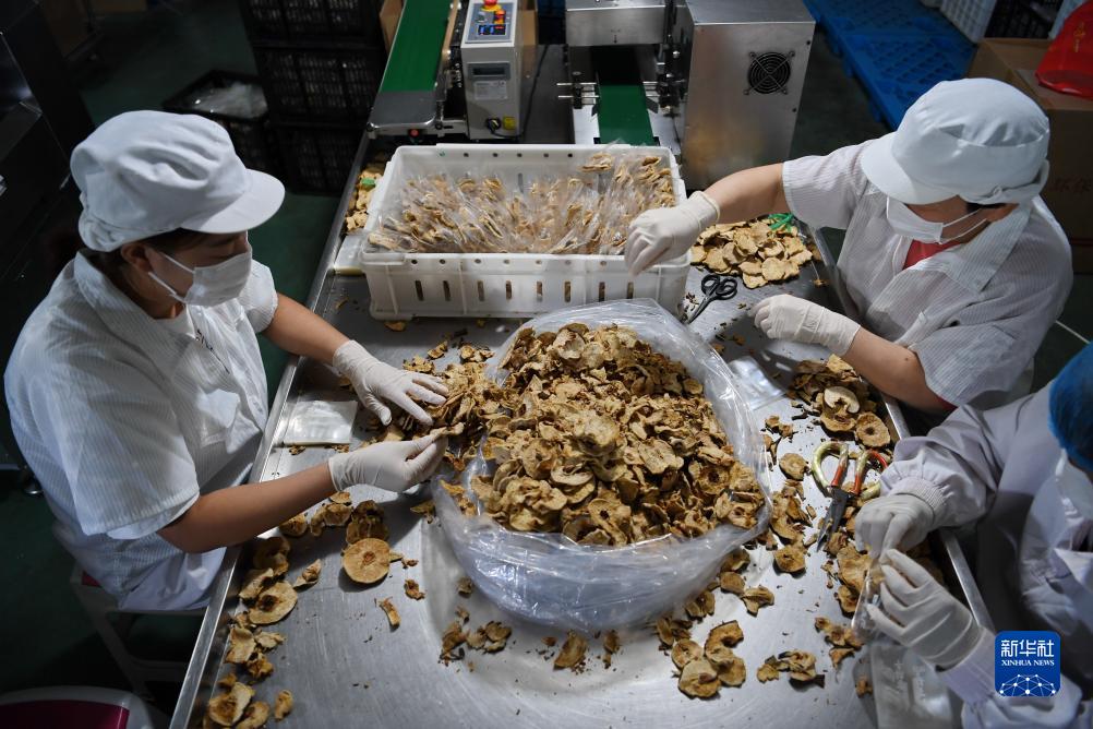 9月22日,趙縣雪香食品有限公司的工人在包裝梨干產品。新華社記者 牟宇 攝