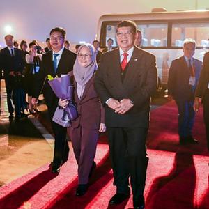 9月22日,來華出席杭州亞運會開幕式的馬來西亞國會下議院議長佐哈里抵達浙江省杭州市。
