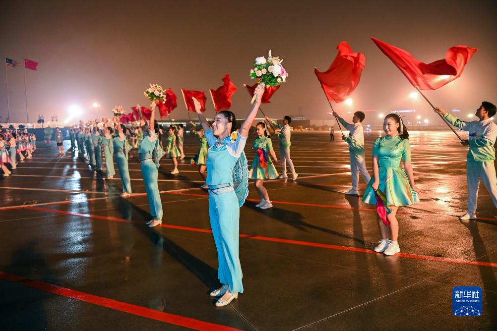 9月22日,來華出席杭州亞運會開幕式的馬來西亞國會下議院議長佐哈里抵達浙江省杭州市。這是歡迎儀式現場。