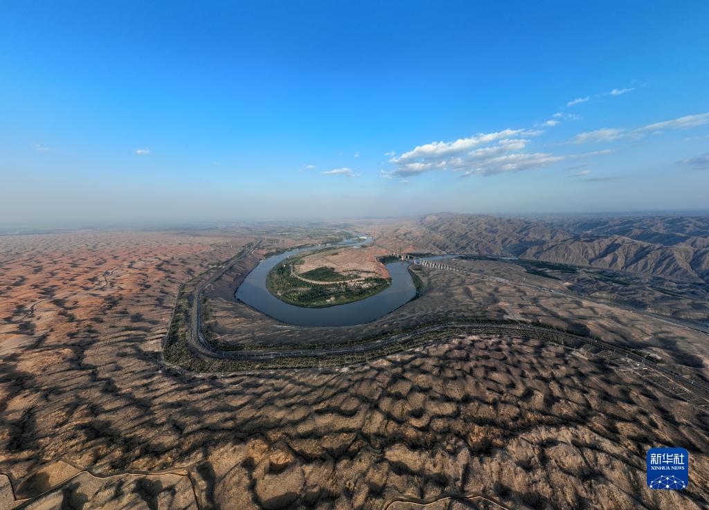 這是流經寧夏中衛市沙坡頭區的黃河(9月6日攝,無人機照片)。