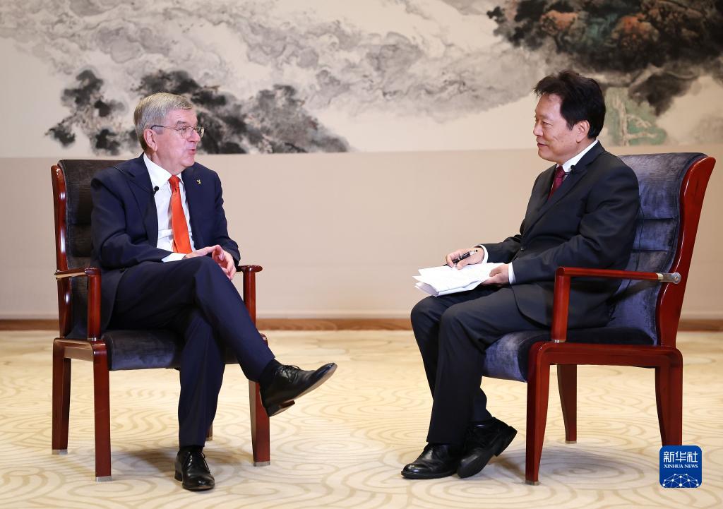 9月22日,國際奧委會主席巴赫在杭州接受新華社記者專訪。新華社記者 曹燦 攝