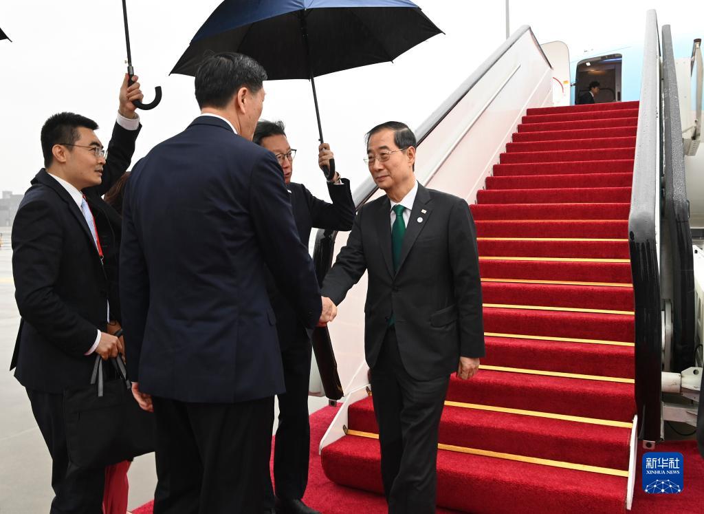 9月23日上午,來華出席杭州亞運會開幕式的韓國總理韓德洙抵達浙江省杭州市。