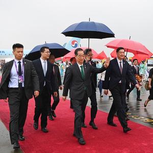 韓國總理韓德洙抵達杭州